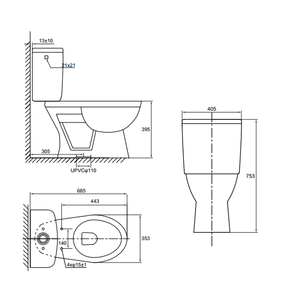 + Hệ thống xả thẳng mạnh mẽ 4.8 lít