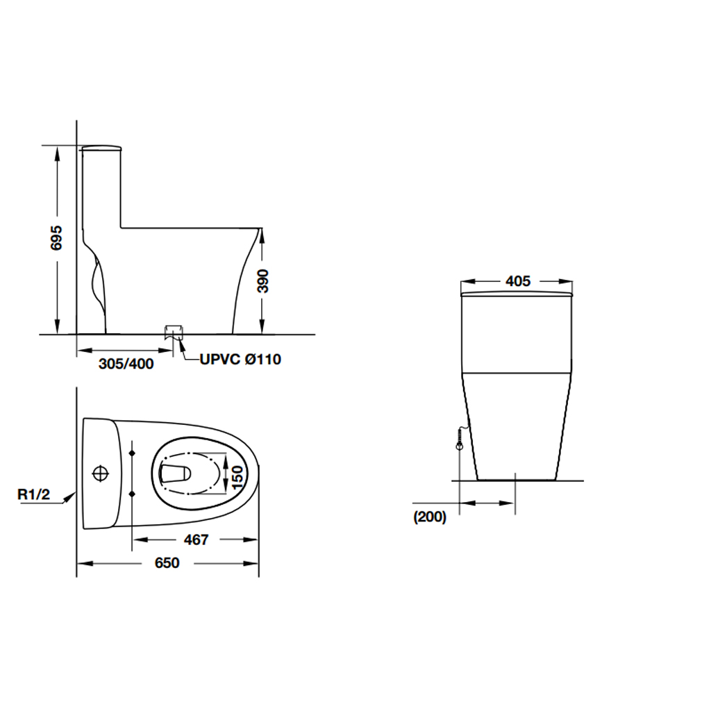THÔNG SỐ KỸ THUẬT CỦA BỒN CẦU MỘT KHỐI HAFELE KOBE 588.79.406