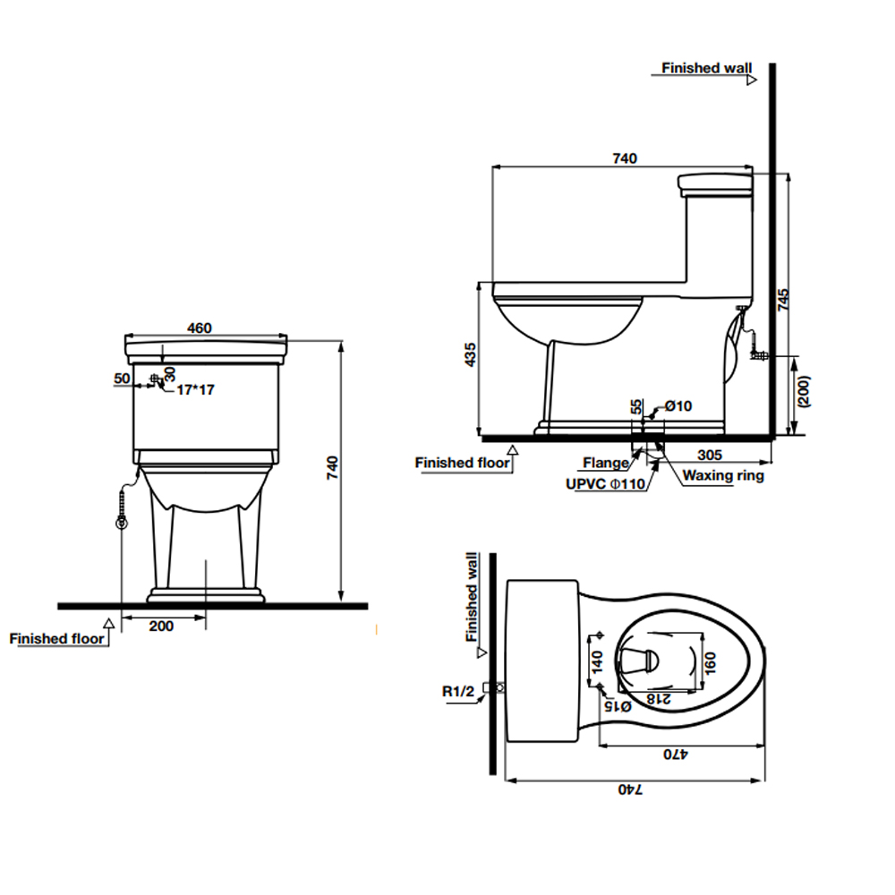 Tên gọi: Bồn cầu một khối Hafele Kyoto