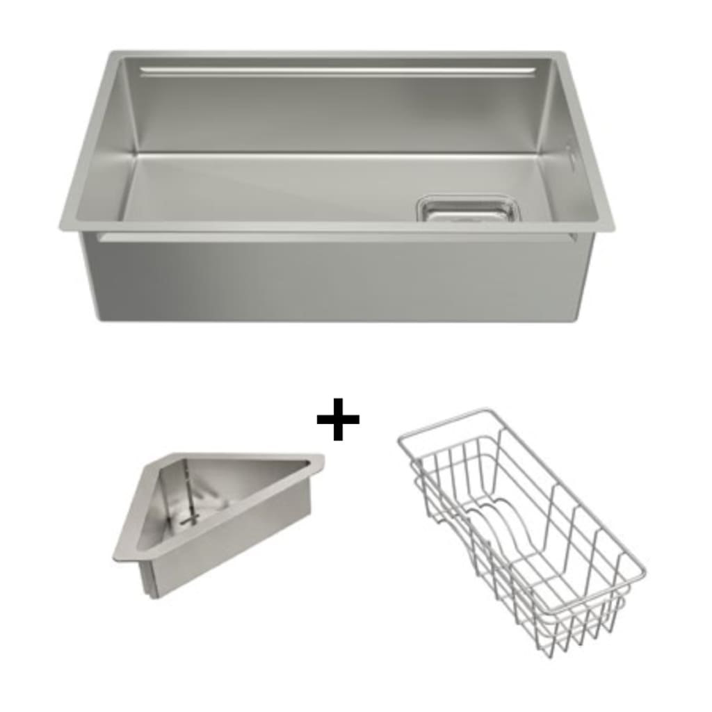 + Tích hợp được các phụ kiện khác: Rổ inox, rổ góc, khay lọc rác vuông
