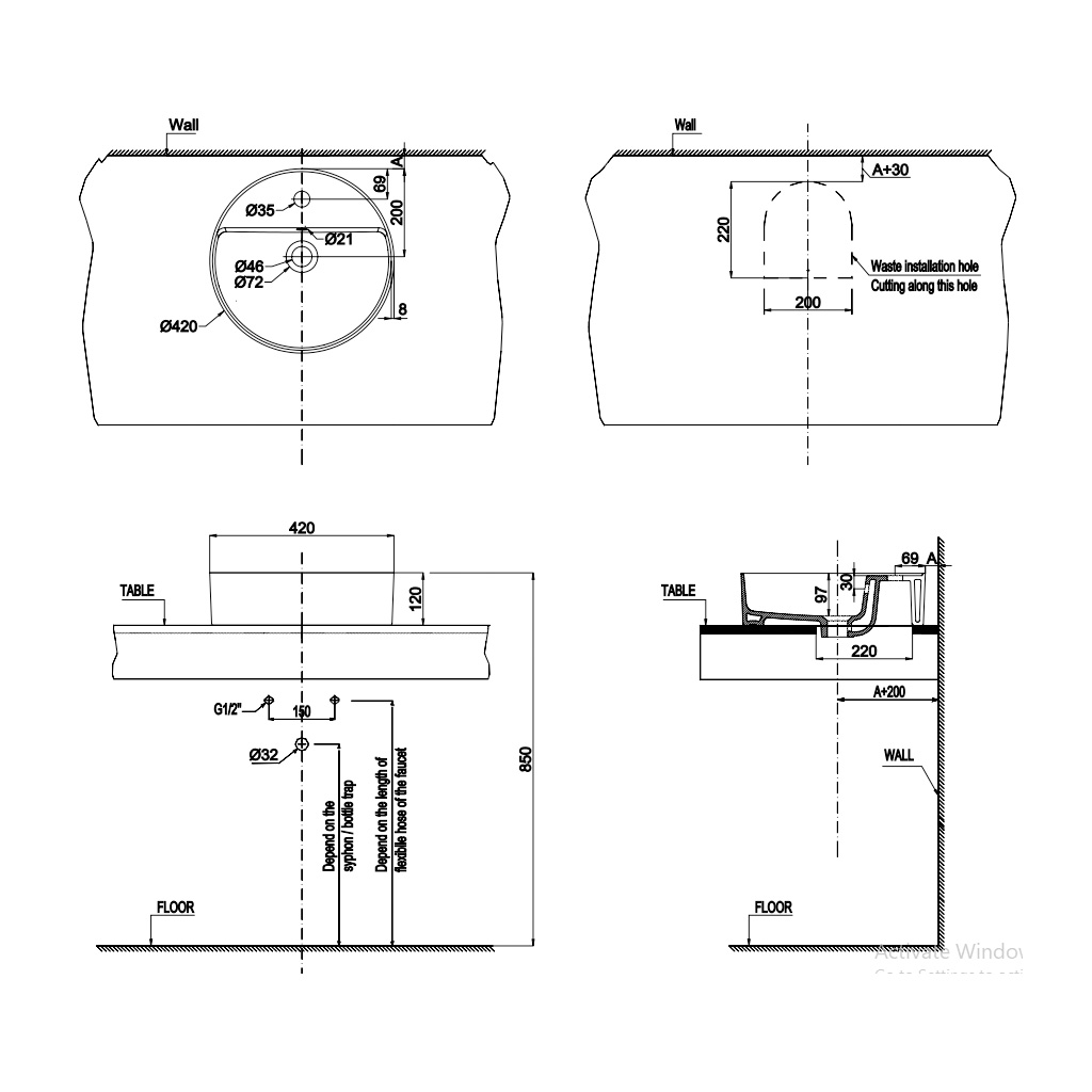 THÔNG SỐ KỸ THUẬT CỦA CHẬU SỨ ĐẶT BÀN HAFELE SAPPORO 588.79.031