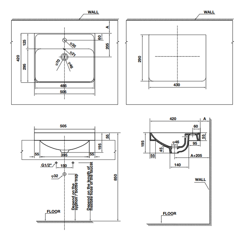 + Đặt riêng siphon và bộ xả